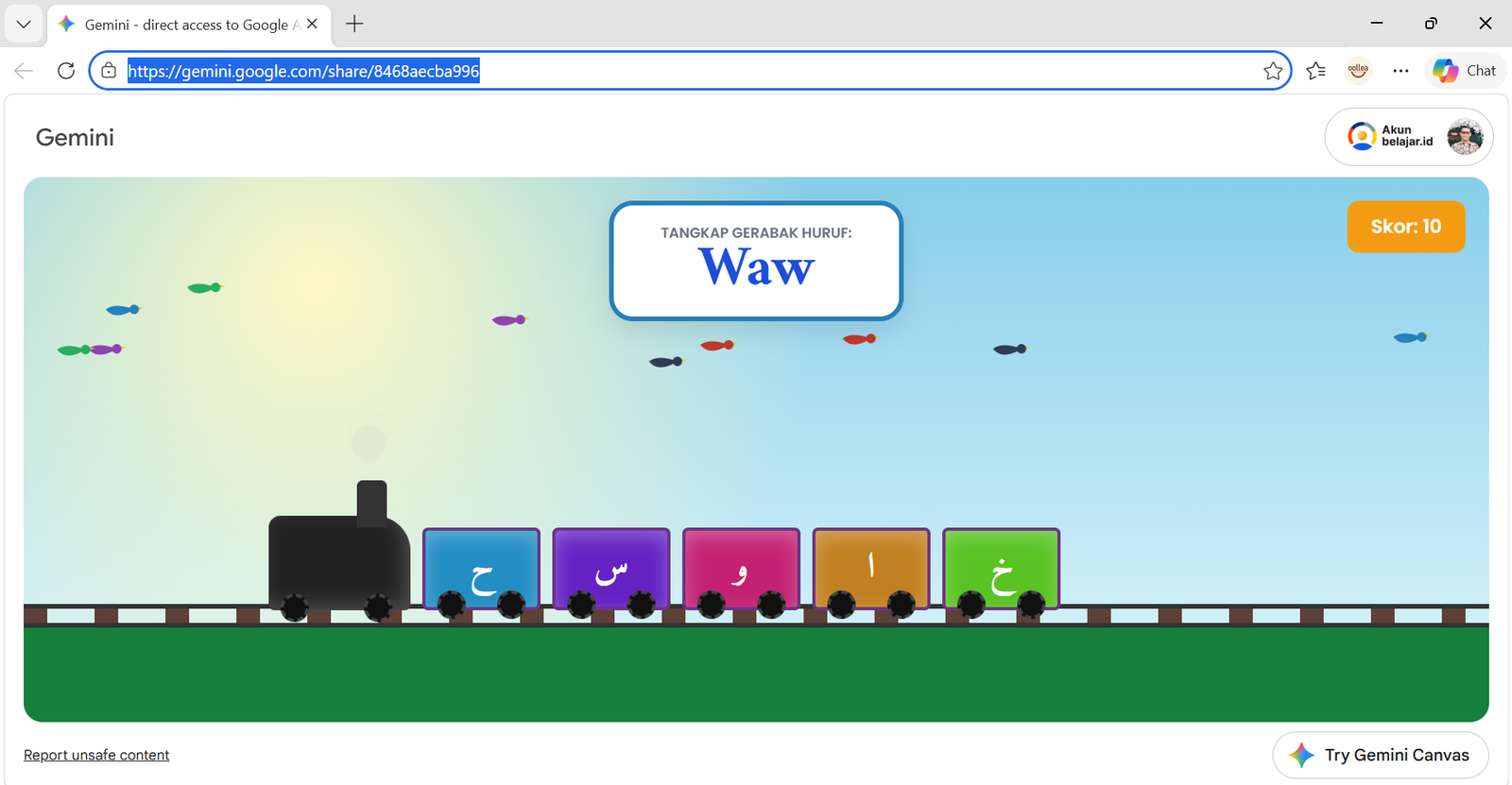 Memanfaatkan teknologi terbaru dari Google, yaitu Gemini Canvas, guru PAI kita berhasil mengembangkan sebuah Games Edukasi yang dirancang khusus untuk meningkatkan minat belajar siswa. Langkah inovatif ini membuktikan bahwa teknologi kecerdasan buatan (AI) dapat menjadi mitra terbaik dalam menanamkan nilai-nilai keimanan dan ketakwaan di era digital.